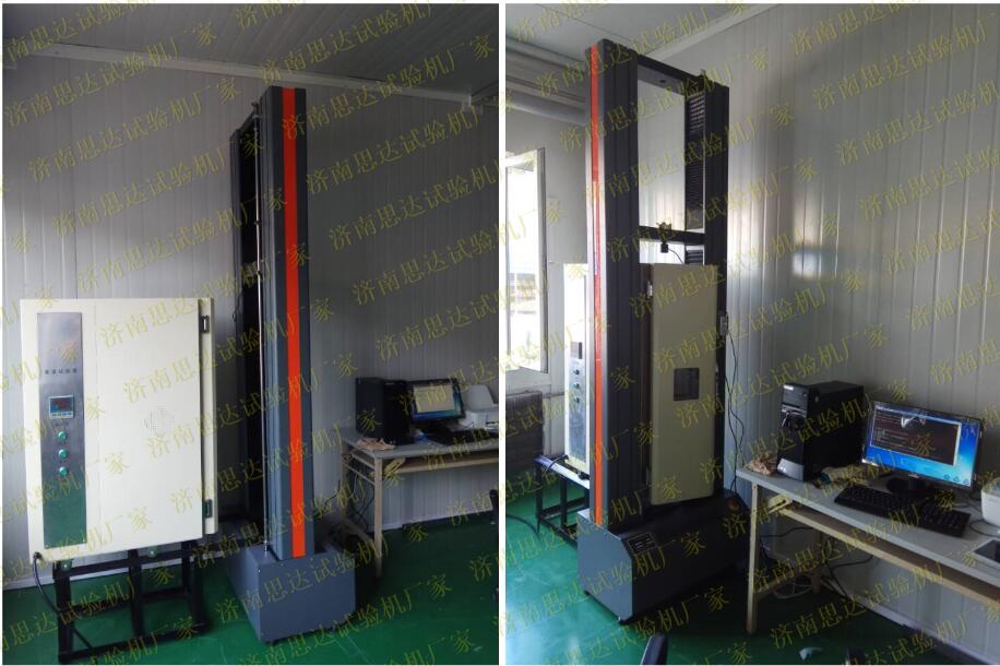 該設(shè)備為用戶(hù)定做設(shè)備,配置高溫箱,試驗(yàn)溫度最高可達(dá)100℃,濟(jì)南思達(dá)定做的這款機(jī)型為加高型,高溫箱可自由滑動(dòng),并且配備專(zhuān)用的拉伸夾具,如下圖所示